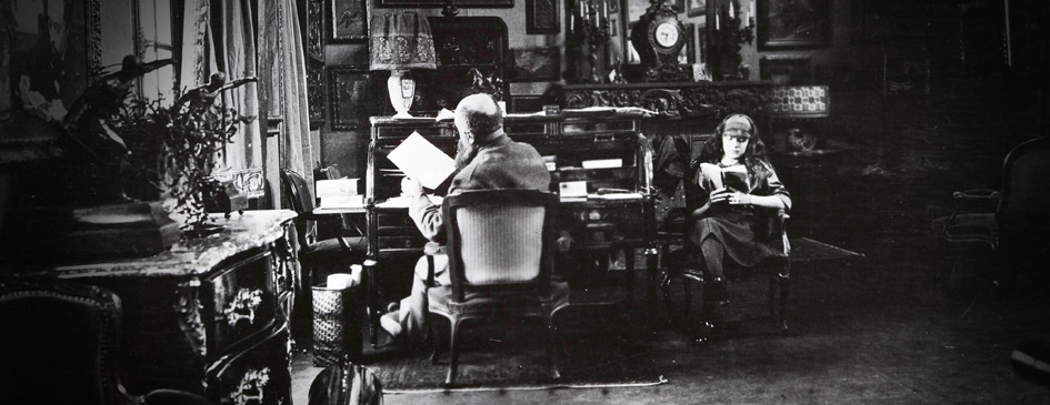 Gustave Fayet asks Redon to decorate the Library. Redon will proceed by painting two large murals ''Night'' and ''Day '' in a very elegant symbolist style ; the murals represent family members. He also calls on Richard Burgsthal, glass master and painter, to restore the glass windows of the Church.
