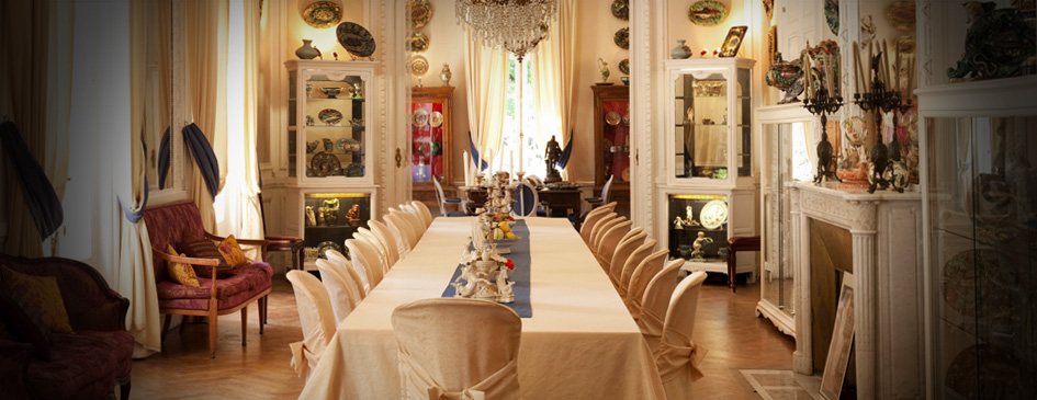 Elegant rooms for private parties (without dancing) or business dinners, cocktails in a refined, artistic setting and with direct access to a beautiful garden.